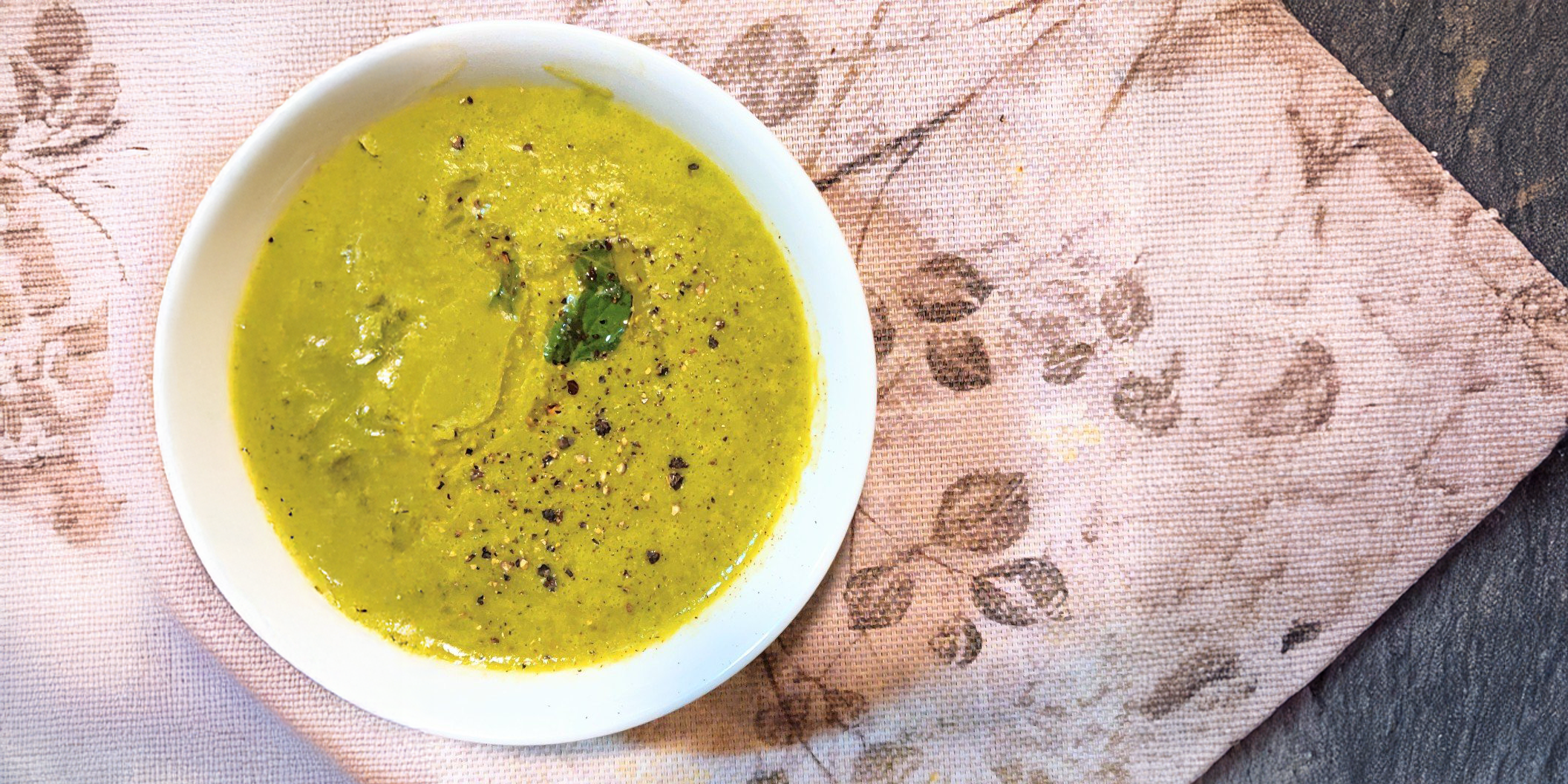 - Pour the soup into 4 bowls and garnish with a 1 tsp of Ghee and some Mint Leaves.