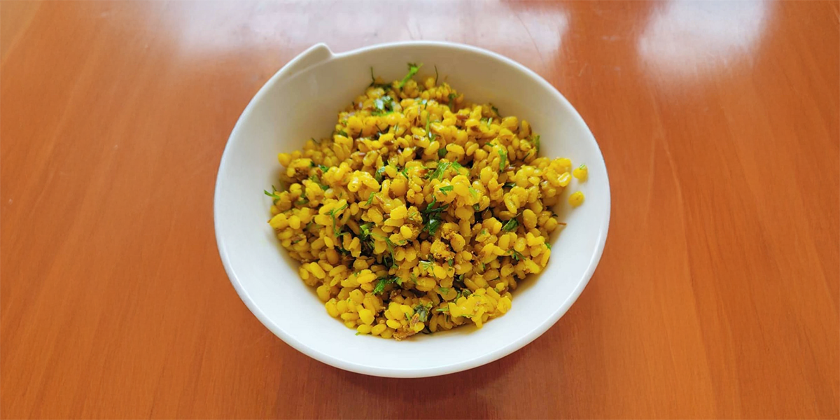 Sauteed Moong Dal (Split Green Gram) is a super easy dish to prepare. It is probably the ease of preparing it that has made it so popular across homes in North India.